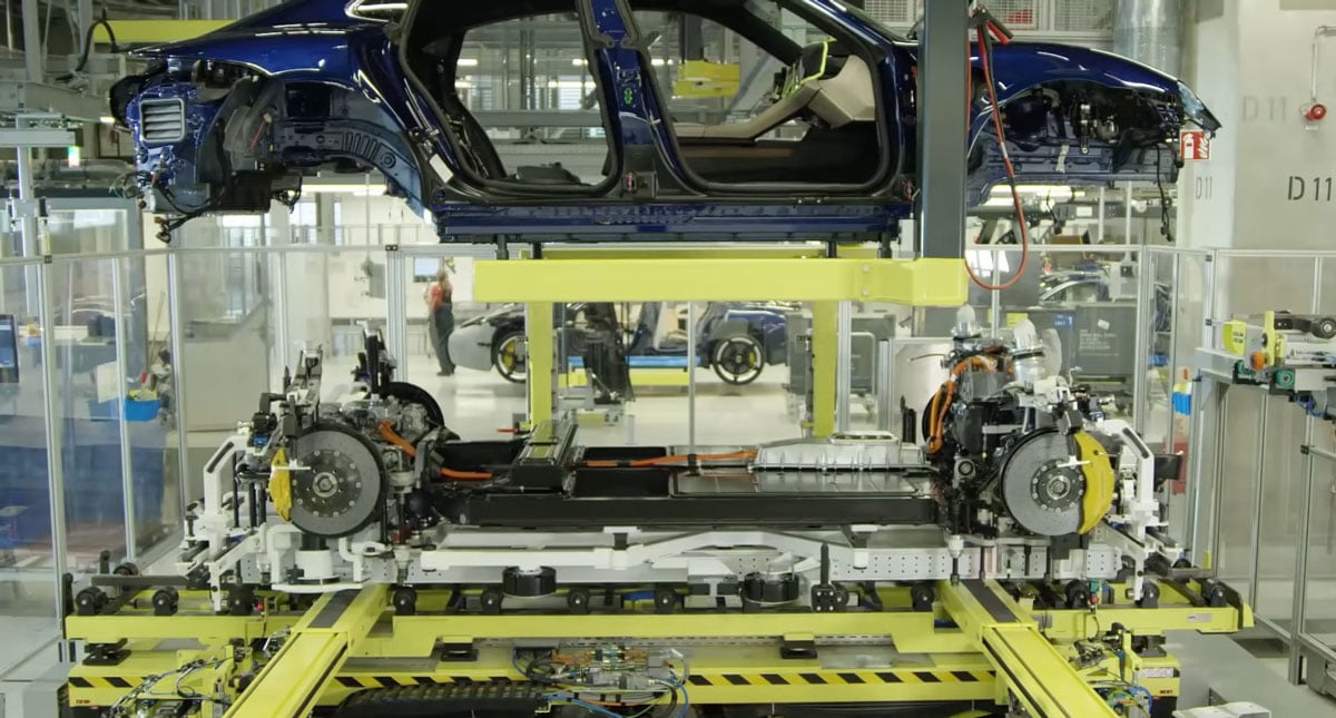 Un processus industriel entièrement nouveau que Porsche nous partage à travers une vidéo dans laquelle il détaille les différentes étapes de la production du véhicule. Y figure notamment celle du « mariage », une étape clé durant laquelle le groupe motopropulseur et la carrosserie se rejoignent pour ne faire qu’un (à 25 minutes sur la vidéo).