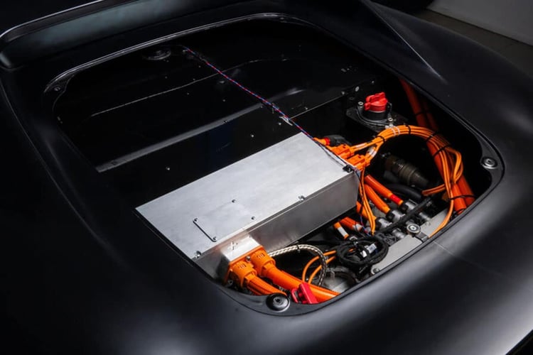 Start-up contre constructeurs : recharge rapide ou grosse batterie ?Derrière sa silhouette singeant celle d’une Lotus Elise S1 se cache un châssis d’Elise S2, comme la Tesla Roadster de première génération. C’est au sein de la structure qu’a été installée toute la chaîne de traction, dont la machine électrique arrière pouvant délivrer un maximum de 476 ch. Bien suffisant pour faire avancer les 1 246 kg de l’engin.