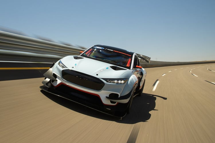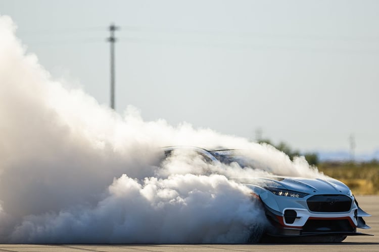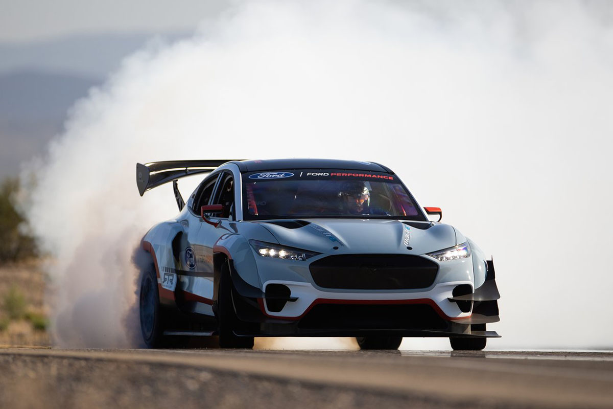 Comme vous pouvez le penser, le chiffre 1400 correspond au nombre d’équidés présents dans ce SUV, soit 1.419 ch dans notre système de mesure. Pour atteindre ce niveau le Mustang Mach-E embarque désormais sept moteurs électriques, avec trois unités à l’avant et quatre à l’arrière. Rien que ça. L’ensemble s’alimente grâce à une batterie de 58,8 kWh, dont l’autonomie, qui n’a plus d’importance, n’a pas été précisée.