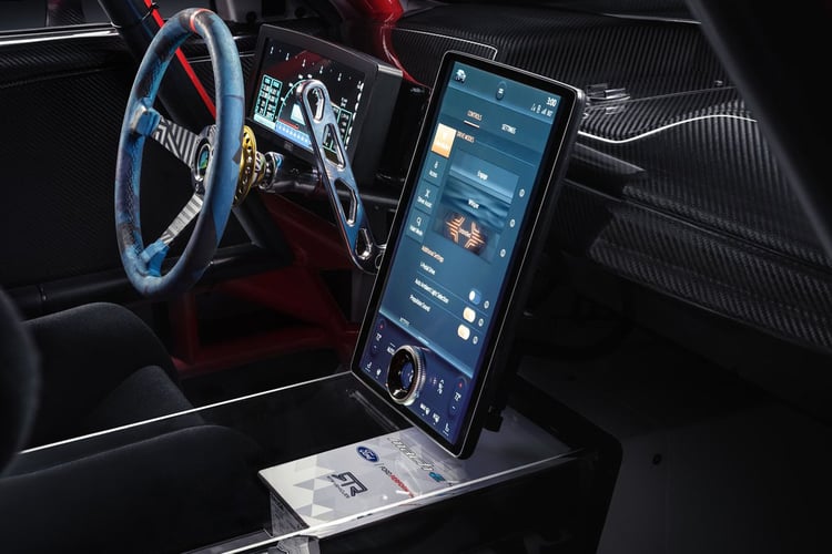 Ayant réclamé plus de 10.000 heures de travail, ce Mach-E 1400 sert surtout de vitrine technologique pour la société RTR, partenaire de Ford et spécialiste des Mustang dopées. Cet exemplaire pousse encore plus loin les potentiomètres en matière de sportives électriques et promet, peut être, de déteindre sur des versions de série.