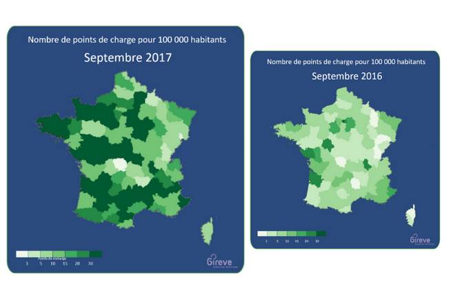 20048 bornes réparties dans 7.242 stations ! C’est le décompte précis réalisé par GIREVE et l’AVERE France qui annoncent une progression de 35,5 % par rapport à l’an dernier (14.799 bornes et 4507 stations à fin septembre 2016).