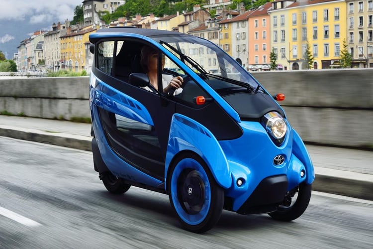 Une seconde place étroite à l’arrière du conducteur permet à l’i-Road d’accueillir un enfant ou des bagages. Le Coms possède quant à lui un coffre. Les deux modèles sont limités à 45 km/h et possèdent une autonomie d’environ 3 heures.