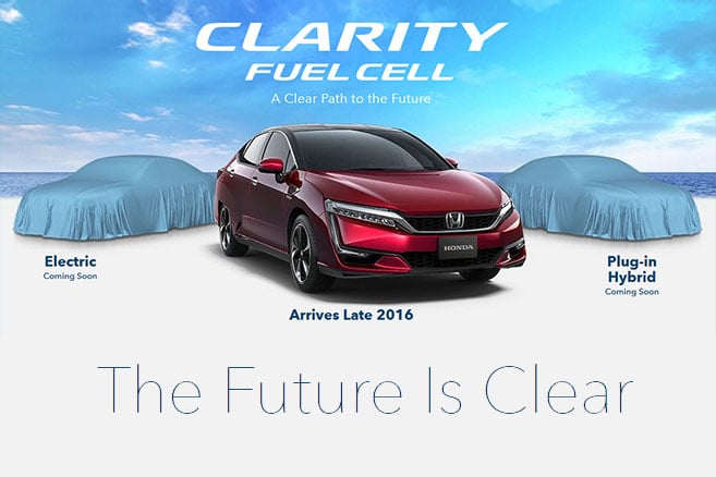 La Honda Clarity Fuel Cell aura également droit à des variantes électrique et hybride rechargeable. Commercialisation attendue en 2017.