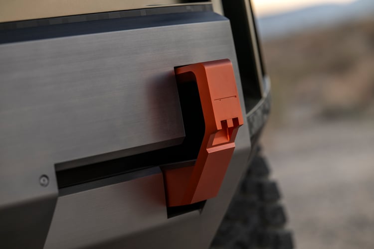 Le Coréen dit avoir pensé le Crater pour affronter les terrains difficiles. Comme vous pouvez le voir, cela se traduit par une silhouette ramassée, des angles d’attaque agressifs et une garde au sol rehaussée, qualités que le constructeur appuie par l’usage d’énormes pneus de 33 pouces et de protections de soubassement largement visibles.