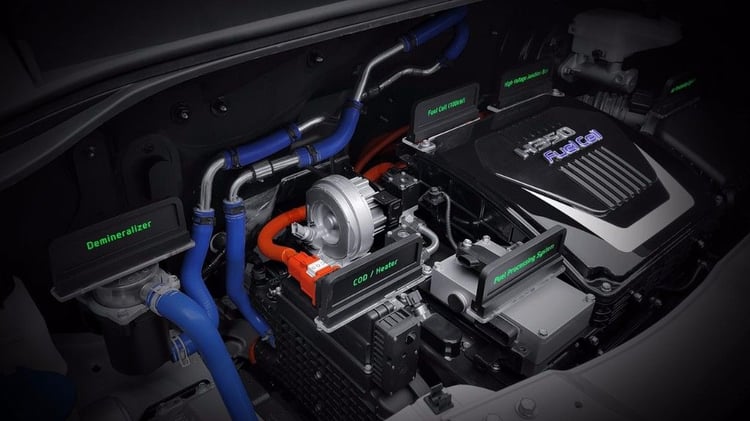 Répartis sous le plancher, les quatre réservoirs embarquent jusqu’à 7.05 kg d’hydrogène sous pression à 700 bars, soit l’équivalent de 175 litres.