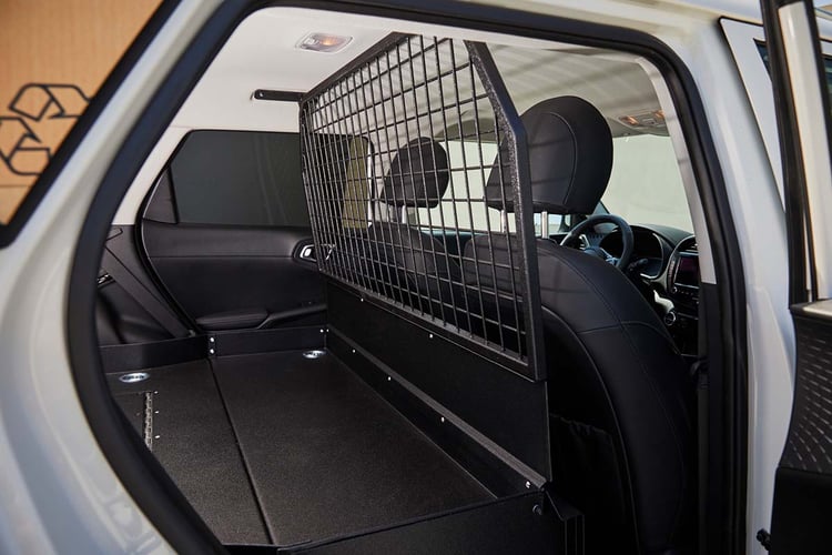 Annoncé comme une solution transitoire en attendant la prochaine génération d’utilitaires électriques, le crossover perd sa banquette arrière et profite de sa forme cubique pour libérer un espace de chargement. La transformation est plutôt simpliste, avec l’apparition d’un plancher plat boulonné dans l’habitacle, mais elle a l’avantage d’être réversible pour retrouver une configuration civile. Le volume de chargement est d’environ 1 m3. Soit le juste nécessaire pour quelques livraisons en ville, ou faciliter le quotidien de quelques artisans.