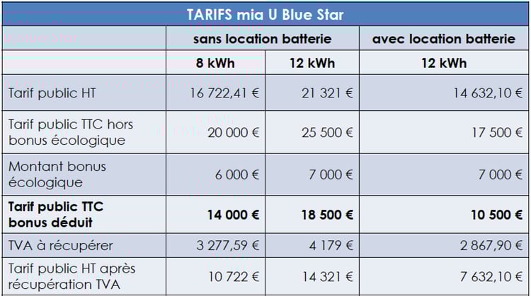 La MIA U Blue Star est une édition spéciale limitée à 100 véhicules : 50 exemplaires avec une batterie 8 kWh et 50 exemplaires en version 12 kWh.