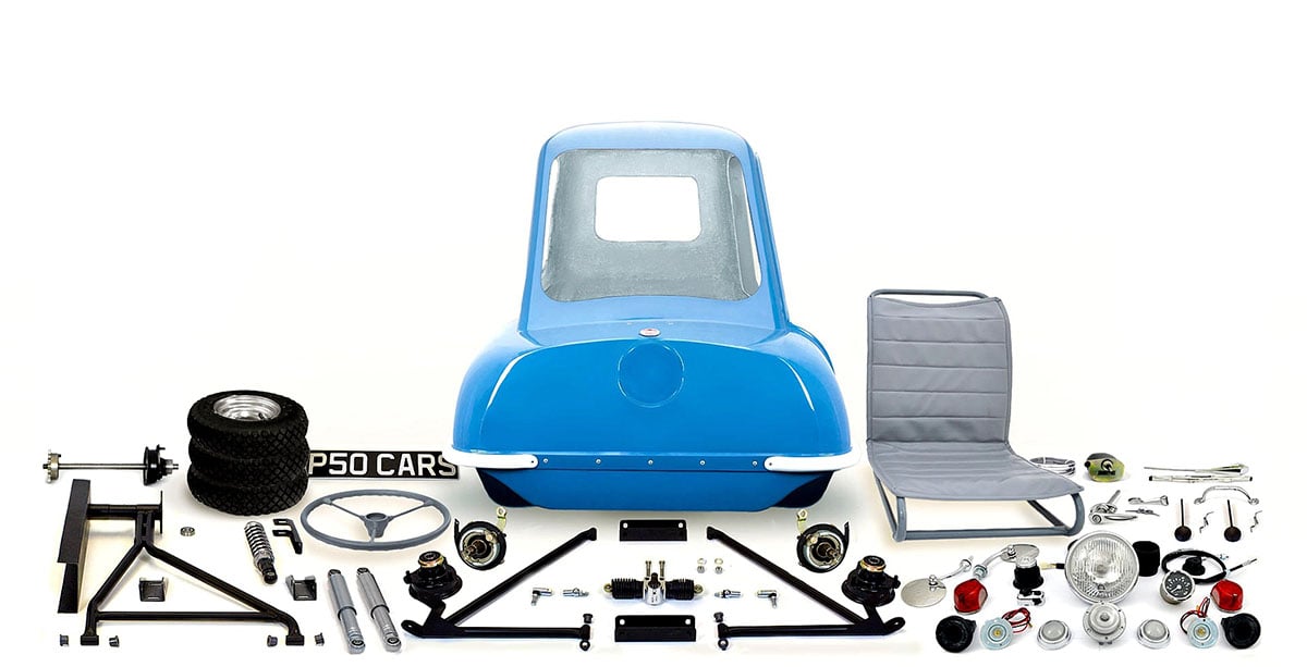 Si elle existe en version clé en main, le constructeur propose aussi une étonnante version en kit à monter soit même. Près de 50 heures de montage seraient nécessaires avant de pouvoir fouler les routes (anglaises) avec ce petit engin. Le prix de départ est de 10 379 livres pour ce modèle en kit, et il faut ajouter une rallonge de 3 593 livres pour un modèle déjà monté. À noter qu’il existe aussi une P.50 Cabrio et une gamme de Trident encore plus lunaires.