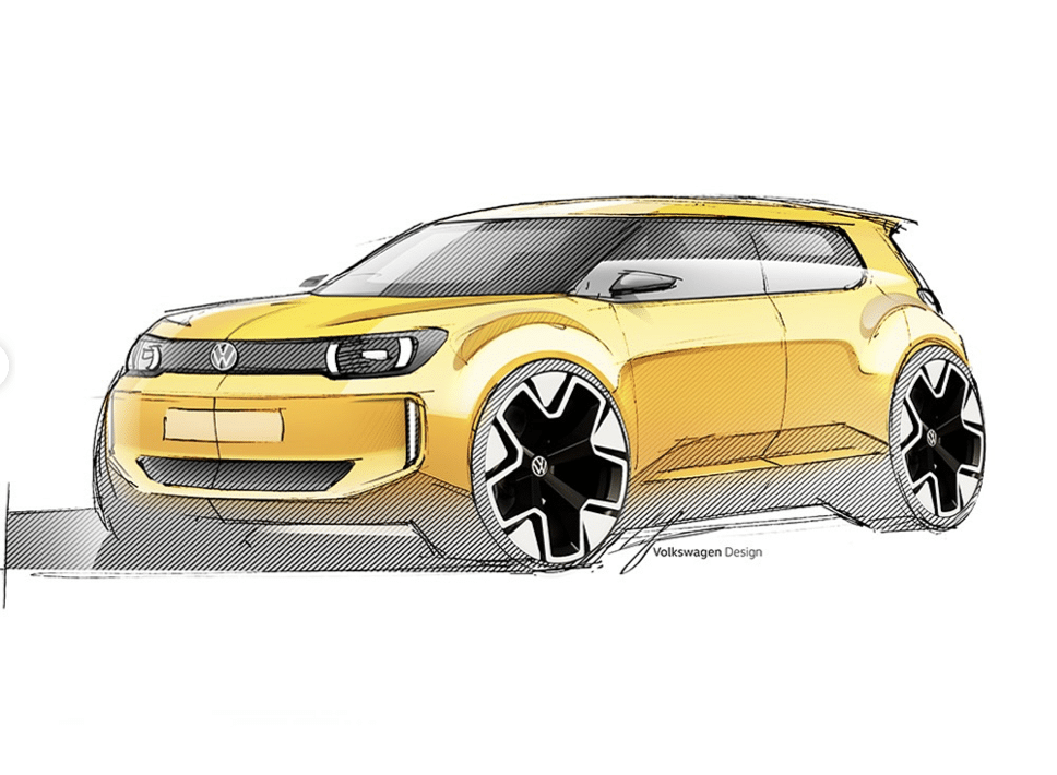 Volkswagen a publié deux dessins du concept qui préfigure sa future petite citadine électrique. Le prototype sera révélé le 5 mars.