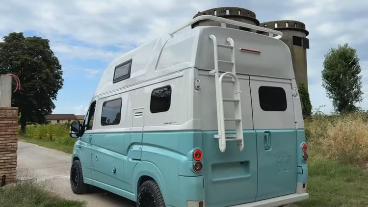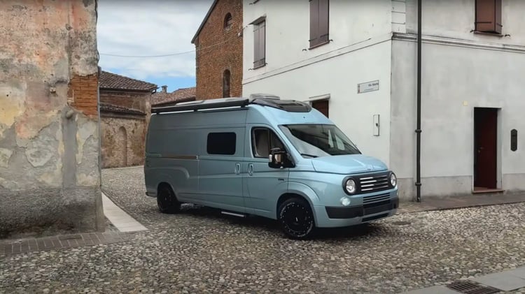 La recette est similaire aux précédentes réalisations de Caselani : des panneaux en composite qui viennent soit remplacer les originaux (à l’avant) ou se coller sur la carrosserie (flancs, portes arrière…). De quoi transfigurer le look de l’utilitaire Stellantis. En théorie, on partira d’un Ducato, mais en réalité rien n’interdit de réaliser l’opération sur un fourgon de la série. Y compris l’Iveco eSuperJolly, puisque le remplaçant du 616N n’est autre que l’Iveco Daily.