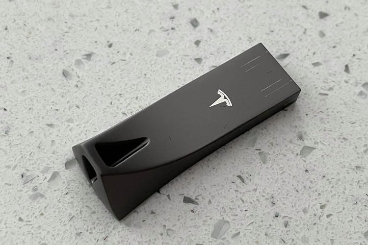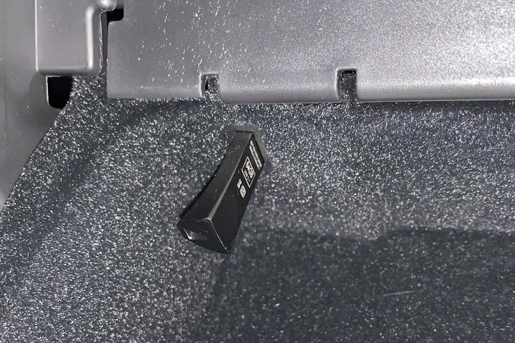 Ce Model Y est aussi équipé d’un port USB dans la boîte à gants et livré avec une clé USB dédiée : ce nouveau dispositif permet ainsi aux propriétaires de sauvegarder sur un support amovible les images captées par les TeslaCam et le Sentry Mode. Toutefois, cet exemplaire ne reçoit pas la nouvelle console centrale, mais elle devrait rapidement faire son apparition.