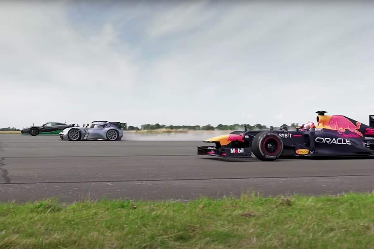 Mais les départs canons offerts par les moteurs électriques ne laissent pas de chance à la Formule 1, qui tombe le quarter mile (402 m D.A.) en 9,5 s, contre 8,4 s pour les deux autres. Dotée de performances qui dépassent l’entendement grâce à son ventilateur qui peut générer 2 000 kg d’appui, la McMurtry Speirling est toutefois limitée à 241 km/h. Aussi, en reprise pure, elle s’incline face à la Formule 1 et la Rimac Nevera. Finalement, c’est elle qui l’emporte lors des manches.