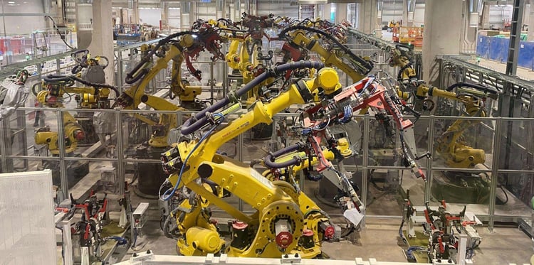 Dans cette série de clichés, on aperçoit un nouveau bâtiment qui sera dédié à sa fabrication ou encore le déploiement en cours de certaines machines, l’atelier peinture et des robots qui seront chargés d’assembler les différentes pièces de carrosserie.