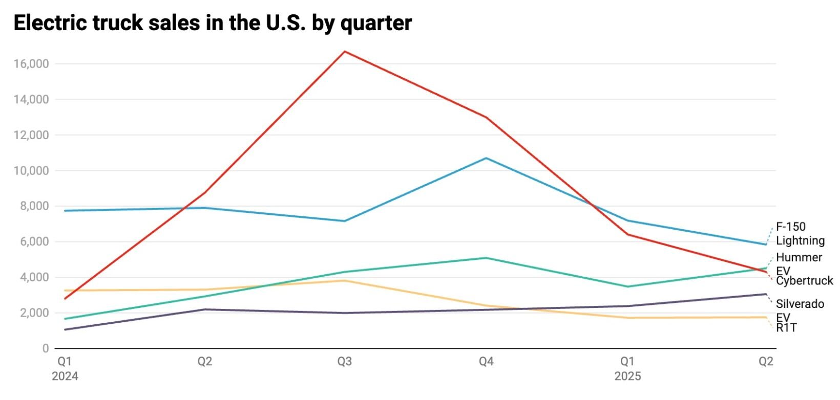 Depuis le pic de 2024, les immatriculations du Tesla Cybertruck ne cessent de dégringoler. L’engin a perdu le titre de pick-up électrique le plus vendu des États-Unis. Il passe même derrière le GMC Hummer électrique au cours du deuxième trimestre 2025. C’est un coup dur pour Tesla !