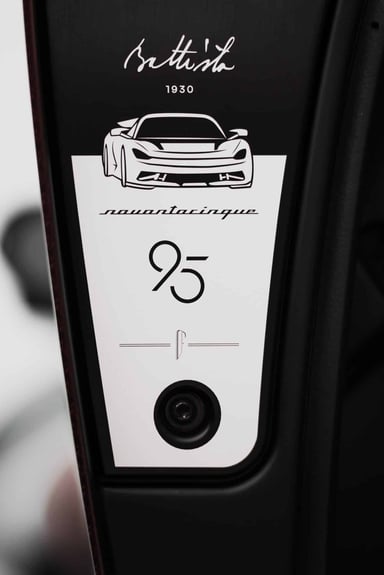 La Novantacinque fait suite à d’autres modèles uniques pour la Battista : Anniversario (90 ans de la marque), Nino Farina (Giuseppe « Nino » Farina, premier champion du monde de F1 et neveu de Battista), Targamerica…