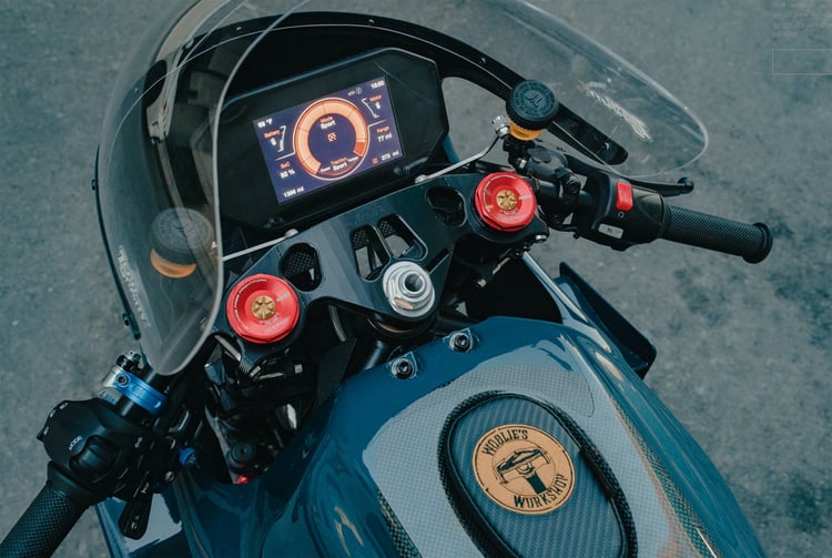 Tombé sous le charme de la Zero SR/S lors des épreuves de Pike’s Peak, celui qui customise les motos pour quelques têtes d’affiche a voulu donner à la fois un air ancien et nouveau à la machine électrique.