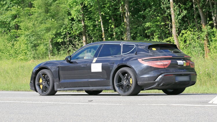 Les passagers assis à l’arrière de la Taycan ne s’en plaindront pas : le luxueux bolide électrique de Porsche sera bientôt lancé en version break « Cross Turismo ». Le véhicule doit être officiellement présenté fin 2020 pour un lancement début 2021. En attendant, on se contentera de ces quelques clichés espions publiés par AutoExpress. Le magazine britannique nous gratifie de quelques chiffres, comme le tarif de la Taycan Cross Turismo : elle coûterai 5000 livres (5500 euros) de plus que la version standard. Soit un prix de départ aux alentours de 114.000 euros avec une motorisation « 4S ».