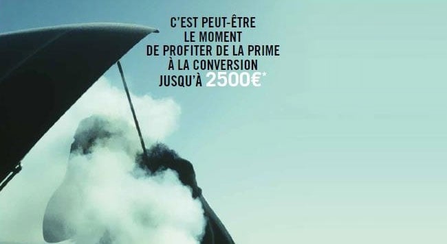 « C’est peut être le moment de profiter de la prime à la conversion – jusqu’à 2500 euros ». La phrase qui accompagne l’image d’un automobiliste enfumé par la panne moteur de son véhicule usé aura certainement son effet à l’approche des grands départs estivaux.