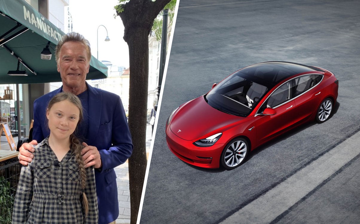 Défenseur de l’environnement, l’acteur et ancien gouverneur de Californie a prêté une Tesla Model 3 afin de transporter la jeune militante suédoise sans émission.