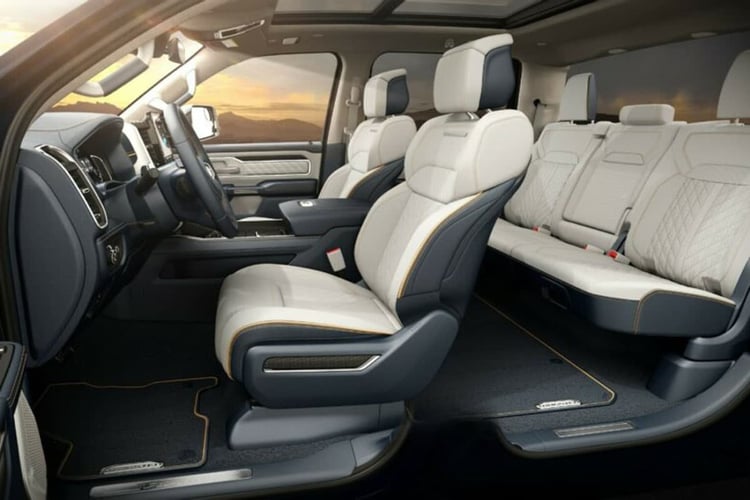 Pour se faire une place au milieu de ce beau, il faillait sortir une fiche technique de tous les superlatifs. Du grand, du lourd, du débordant. Et c’est ce que fait ce RAM 1500 REV, qui s’équipe d’une batterie d’une capacité de 229 kWh, permettant de viser une autonomie EPA de 805 km. A quoi cela peut servir ? A bénéficier d’une autonomie confortable avec un lourd attelage à traîner.
