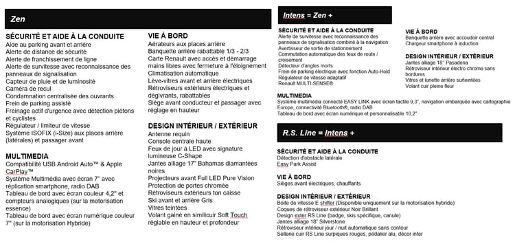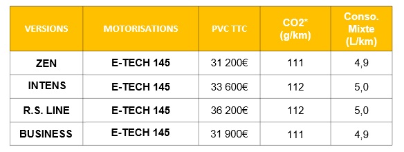 Renault propose en outre un niveau Business pour les entreprises, proche du Zen, facturé 31 900 euros.