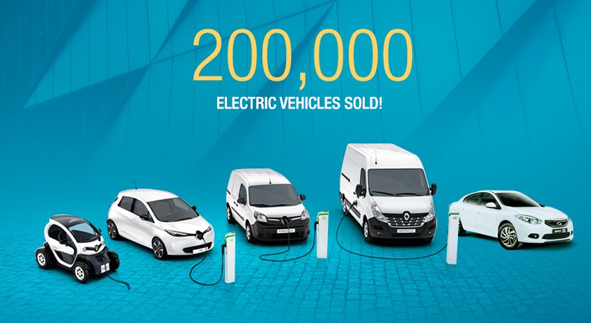 Par l’intermédiaire de son compte Twitter, le groupe au losange annonce avoir franchi le cap des 200.000 véhicules électriques vendus depuis le début de sa nouvelle offensive sur le segment du tout électrique, en 2013.