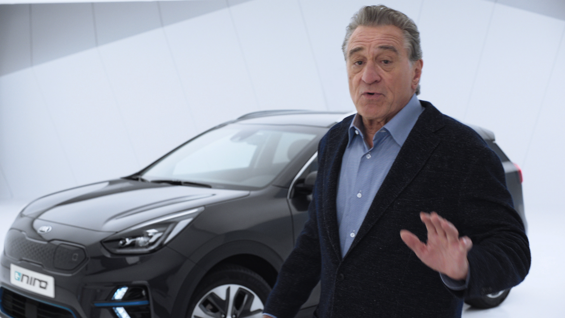 Du 1er au 15 décembre, Kia diffuse une nouvelle campagne publicitaire pour son e-Niro sur les chaînes de la TNT, du câble et du satellite. Pour la troisième fois, le constructeur coréen fait appel à Robert De Niro, jouant sur l’homonymie entre le célèbre acteur et son SUV électrique. Le clip de 30 secondes est très simple, le véhicule est présenté sur fond blanc. « Le Kia e-Niro électrique a une autonomie exceptionnelle allant jusqu’à 455 km en une seule charge. Vous êtes libres d’aller partout : vous pouvez aller à la plage, vous pouvez aller au ski, ou simplement rentrer chez vous après une dure journée » annonce le comédien.