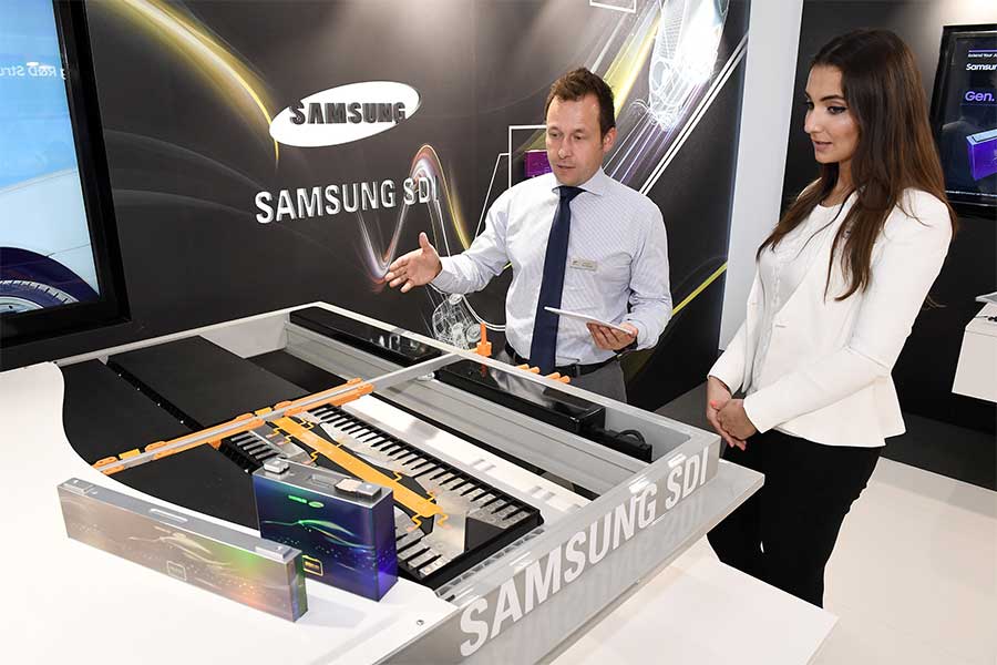 A Francfort, le groupe coréen Samsung SDI présente ses dernières innovations batteries. Objectif : rencontrer les constructeurs pour les inciter à choisir sa technologie.
