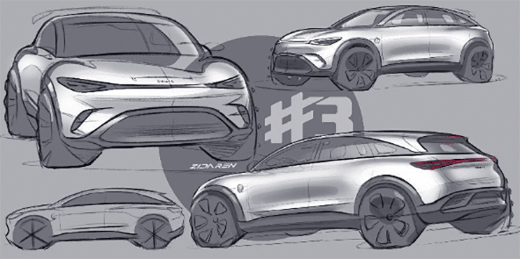 L’identité stylistique forgée par la #1 reste préservée : formes lisses de galet, museau plongeant, grille trapézoïdale en partie basse du bouclier, pavillon semi-flottant, signature lumineuse… Mais plus longue, la #3 en profite pour proposer des proportions qui semblent plus dynamiques avec son vitrage fuyant vers l’arrière. Seule la longueur évolue par rapport au plus petit modèle de la famille, puisque les autres cotes restent inchangées : 1822 mm de large, 1636 mm de haut et 2750 mm d’empattement. L’intérieur devrait lui aussi rester assez proche entre les deux modèles.
