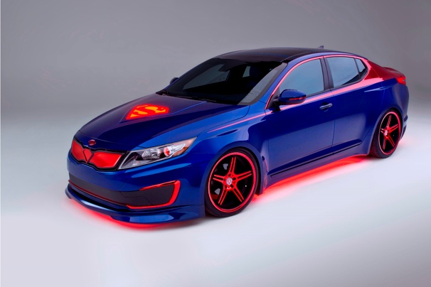 Batman a eu son Optima SX, Aquaman sa Rio cinq portes, et désormais Superman son Optima hybride. Kia a travaillé avec DC Entertainment et le magazine Super Street sur cette ligne de voitures un peu spéciale, afin de soutenir la campagne caritative « We Can Be Heroes » menée par DC Entertainment. Huit voitures au total doivent être créées.