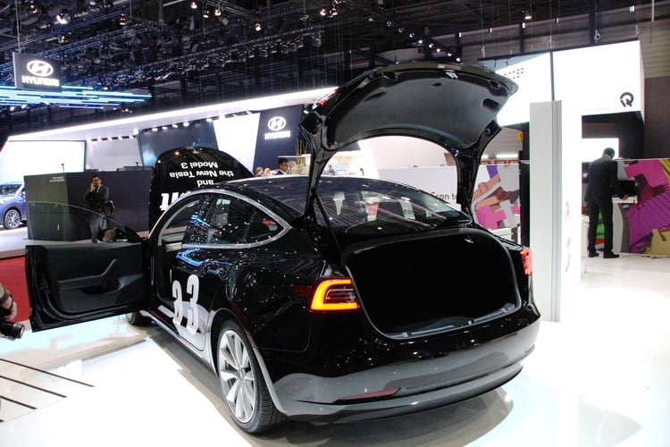 Pour la seconde année consécutive, Tesla n’est pas présent officiellement sur le salon de Genève. Pourtant, une Model 3 y est bien exposée…
