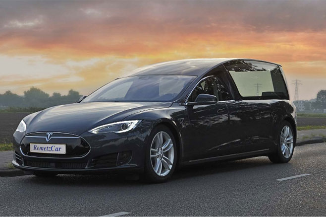 Rouler électrique jusqu’à votre dernière demeure… c’est ce que propose l’équipementier néerlandais Remetz Car qui a converti une Tesla Model S en corbillard…