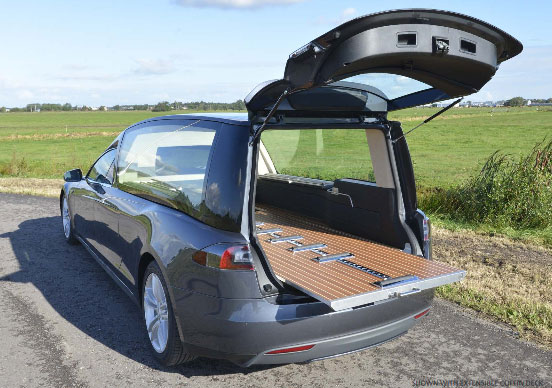 Si la plupart d’entre nous n’aurons peut-être jamais la chance de pouvoir acquérir une Tesla Model S, peut-être que cette version modifiée de la berline électrique californienne pourra vous emmener jusqu’à votre dernière demeure.