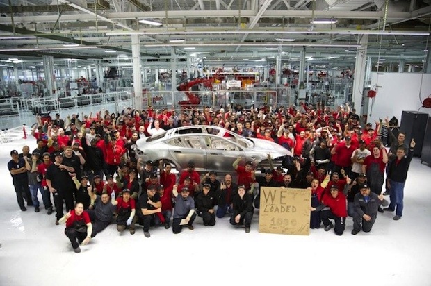 L’information a été tweetée par le fondateur de la marque, Elon Musk. La production passe donc à quatre chiffres, pour une voiture dont le prix est à six chiffres : en effet les modèles haut de gamme de la Model S coûtent 100 000 $.