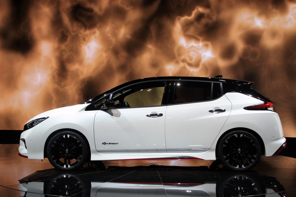 Dessinée par Nismo, le label « hautes performances » de Nissan, la Leaf Nismo arbore des éléments esthétiques spécifiques et se caractérise par une signature rouge censée renforcer son côté dynamique.