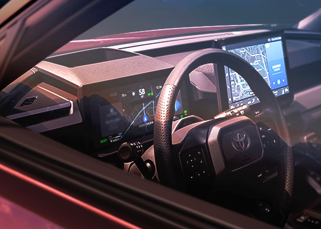 Le patron de Toyota enfonce la voiture électriqueLa marque vient d’annoncer qu’elle sera dévoilée le mercredi 21 mai. Cette date est accompagnée de quelques images teasers, où l’on aperçoit à peine l’extérieur, mais un peu mieux l’intérieur, avec notamment cet avant-goût de la planche de bord. On voit un grand écran tactile au centre et une instrumentation numérique sans casquette face au conducteur.