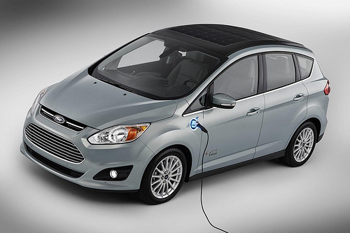 Ford a présenté sa C-MAX Solar au salon CES (Consumer Electronics Show) de Las Vegas, un prototype hybride rechargeable qui utilise un panneau solaire photovoltaïque installé sur le toit pour charger.