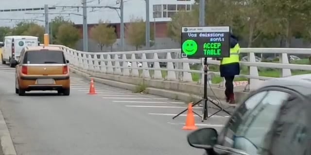 Il ne verbalise pas mais informe les automobilistes du niveau de pollution réellement rejeté par leur véhicule. Installé sur un grand boulevard du 2e arrondissement de Marseille, ce « radar » analyse les gaz d’échappement et indique sur un panneau lumineux si les émissions sont « acceptables », « médiocres » ou « mauvaises ».