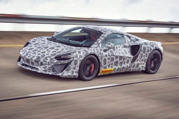 Le constructeur britannique spécialisé dans les supercars a dévoilé quelques images camouflées du prototype de son futur véhicule. Si le design de l’engin ne tranche pas avec les lignes historiques de McLaren, son moteur est une nouveauté. Le bolide sera propulsé par un bloc V6 hybride-rechargeable au lieu du traditionnel V8 bi-turbo. Sans révéler le moindre détail de la fiche technique, McLaren affirme que l’autonomie électrique sera « capable de couvrir la plupart des trajets urbains ». On peut donc tabler sur un rayon d’action d’environ 50 kilomètres, soit le standard actuel de la plupart des véhicules hybrides rechargeables du marché.
