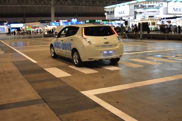 Nissan a présenté au Japon son premier modèle de voiture sans conducteur, basé sur la Leaf.