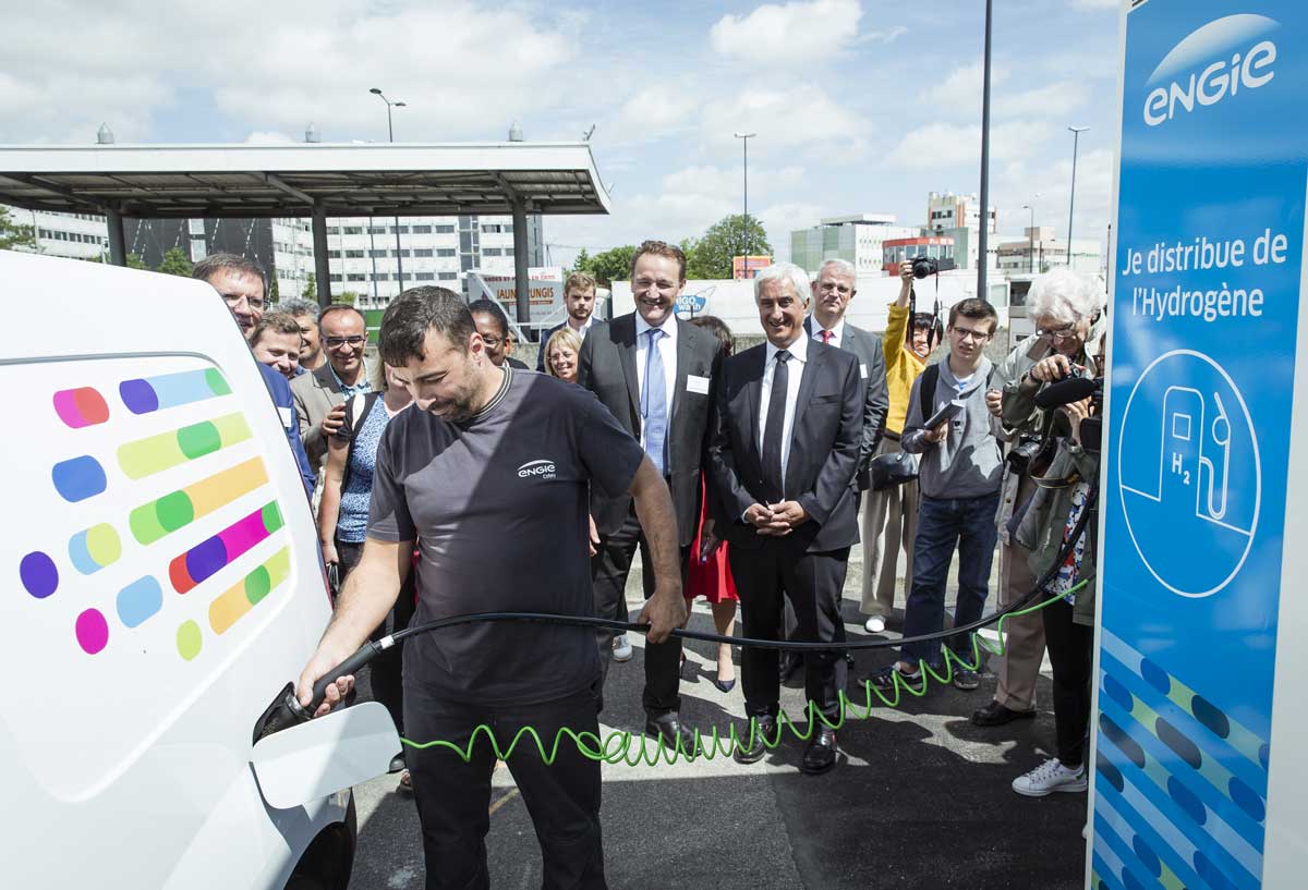 Dotée d’une capacité de ravitaillement provisoire de 20 kilos par jour pour commencer (80 kg/jour à terme), cette station servira notamment à alimenter une flotte de 50 Renault Kangoo électriques mis à disposition en location longue durée par Alphabet et équipés du prolongateur à pile à combustible développé par l’équipementier grenoblois Symbio.