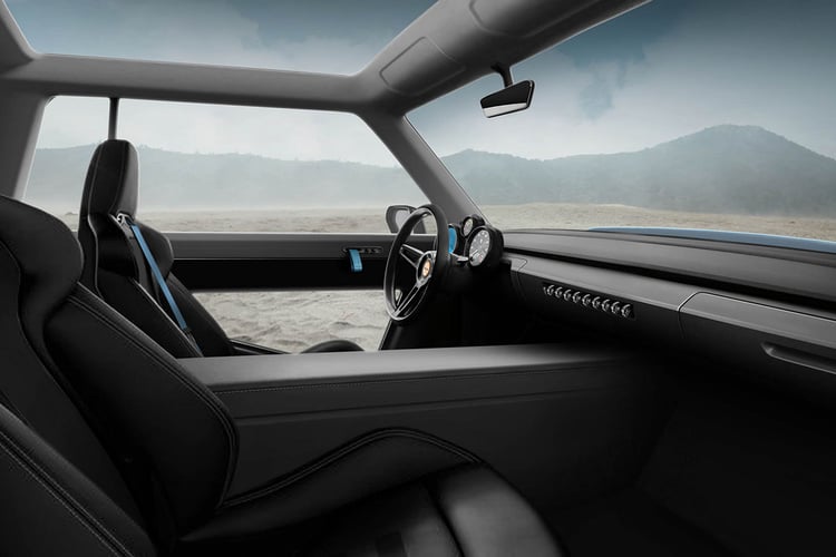 L’habitacle est diamétralement opposé à la rugosité du style extérieur. La planche de bord est on ne peut plus épurée et trois cadrans font face au conducteur. L’ensemble baigne dans la lumière grâce aux surfaces vitrées, que l’on retrouve aussi dans le bas des portières.