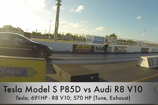 Quand la Tesla Model S P85D s’oppose à l’Audi R8 sur un départ arrêté de 400 mètres, voilà ce que ça donne…