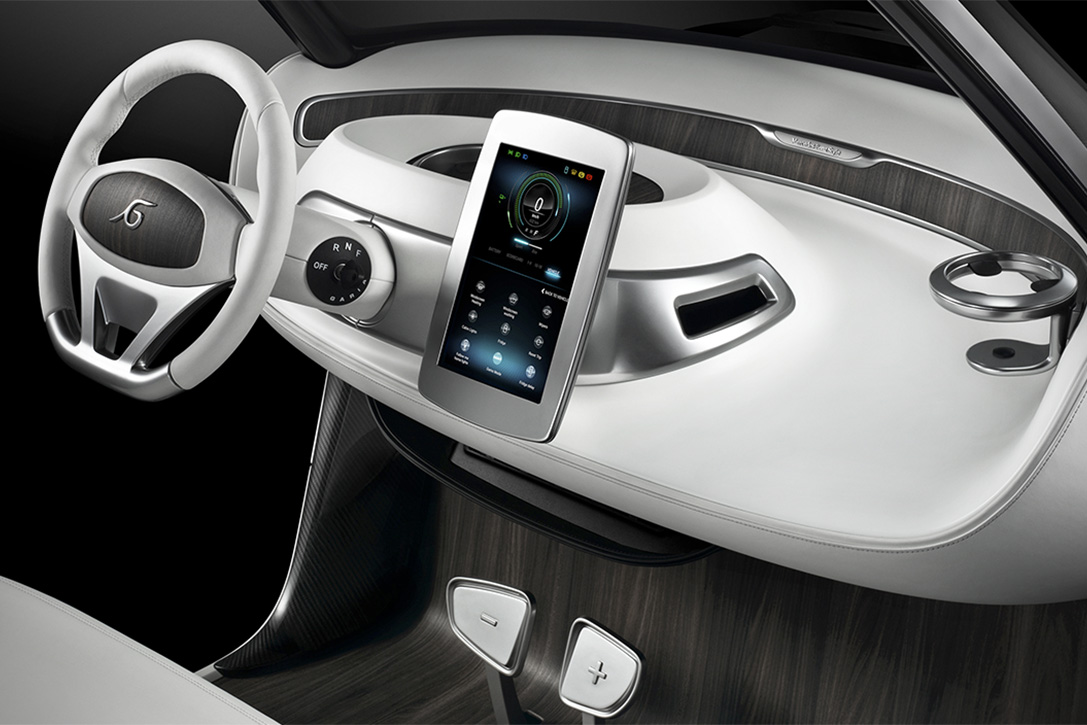 Fibre de carbone, boiseries, métal brossé etc… Mercedes mise sur le haut de gamme pour séduire une clientèle aisée. Idem pour les équipements avec l’utilisation d’une sellerie cuir et la présence d’un réfrigérateur sous la banquette. Capable d’accueillir jusqu’à deux passagers, la golfette électrique de Mercedes reçoit également un écran tactile de 10.1 pouces. Placé en position verticale, celui-ci indique les informations liées à la voiture et peut également afficher des données liées au parcours ou aux conditions climatiques.