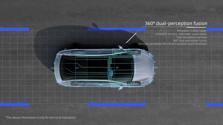 En tout cas, il repose sur des technologies développées en interne. Le véhicule possède 32 capteurs différents : 2 LiDAR, 12 capteurs ultrasons, 4 radars et 13 caméras. Le système « Xpilot 3.5 » se charge de traiter les données et manœuvrer la berline, mais le processeur « Xavier » est d’origine Nvidia.