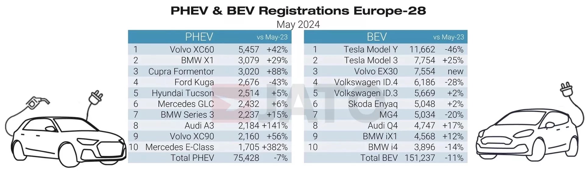 Une mesure qui touchera également BYD, Volvo et Tesla pour n’en citer que quelques-uns. Vous l’aurez compris, ce n’est pas la nationalité de la marque qui compte, mais bien le lieu de production. Parmi les 10 modèles électriques les plus vendus en Europe en mai 2024, 3 étaient d’origine chinoise : la Tesla Model 3, le Volvo EX30 et la MG4. La berline américaine et le petit SUV suédois sont même respectivement à la 2e et 3e place.