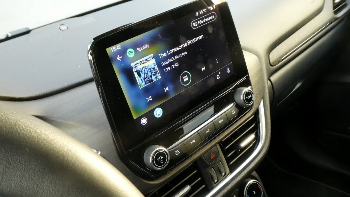 L’assemblage est lui aussi correct, et la console centrale, simple, s’avère claire et pratique à utiliser. Cette dernière est surplombée par un écran tactile de 8 pouces qui propose SYNC 3. Android Auto et Apple CarPlay peuvent par ailleurs se substituer au système maison de Ford.