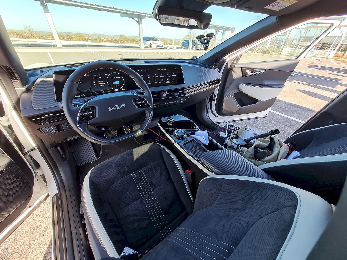 Une décennie plus tard, nous embarquons à bord du Kia EV6 : un SUV 100 % électrique offrant 528 km d’autonomie WLTP en cycle mixte et une puissance de recharge phénoménale de 239 kW DC. Des caractéristiques bien éloignées des 150 km et 22 kW AC proposés par la première Renault Zoé. La version essayée est une 2-roues motrices propulsion, développant une puissance de 229 ch et 350 Nm de couple. Elle est naturellement moins lourde que la version 4 roues motrices (1 985 kg vs 2 200 kg) et donc plus endurante.