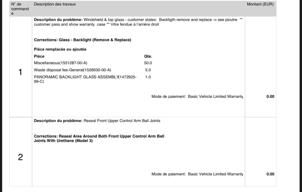 C’est exactement la même histoire pour ce client américain que pour moi : rotules jointées et un an plus tard, grincements. Tesla lui a finalement remplacé les triangles supérieurs entiers. Nouvelles rotules, nouveaux silentblocs, problème résolu. Le tout a été pris sous garantie.