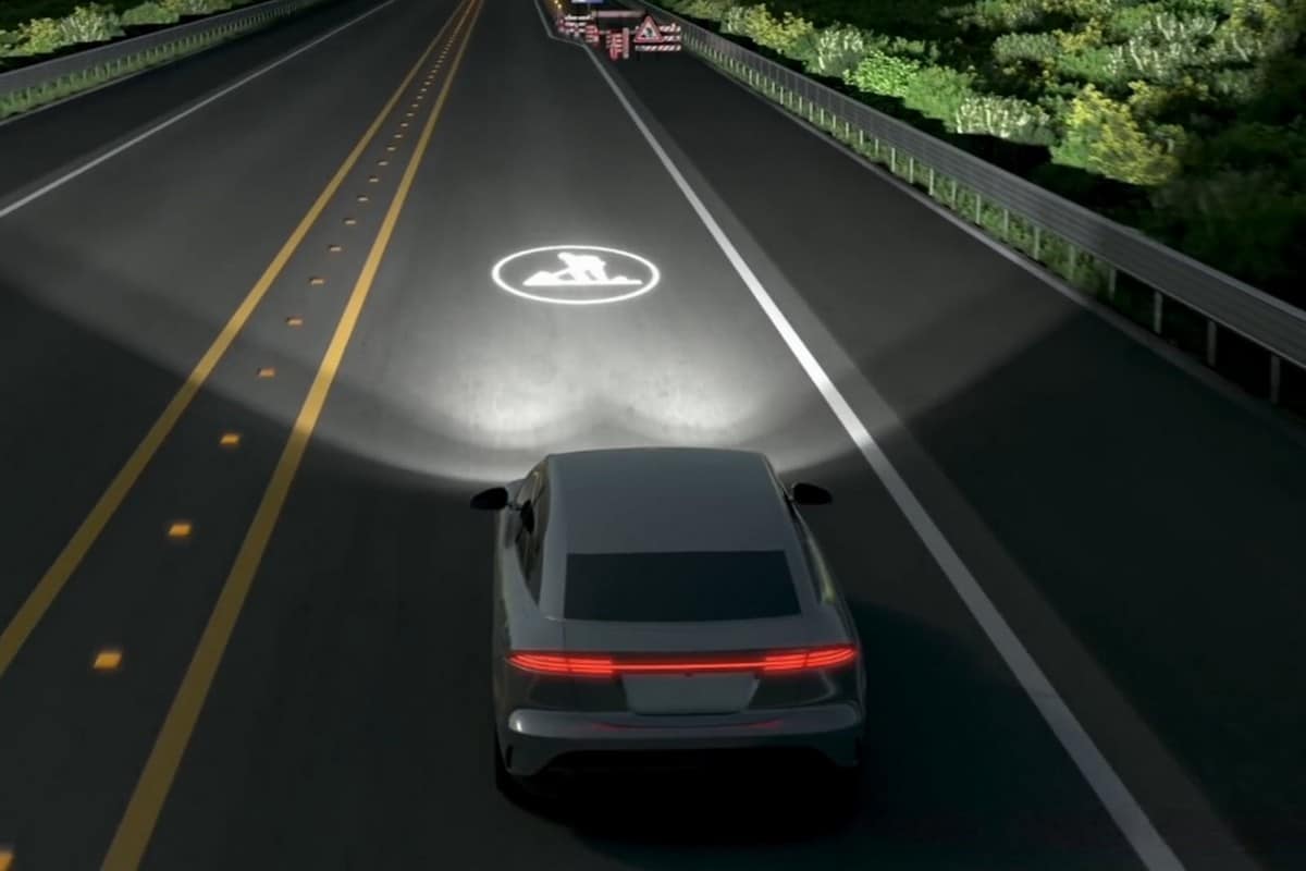 Dans ces zones, le véhicule pourrait repérer le piéton grâce à sa caméra et projeter un panneau au conducteur. Cela permettrait à ce dernier de s’arrêter, avant que la voiture n’éclaire un passage piéton sur la route.